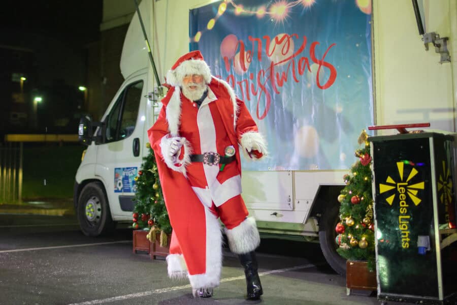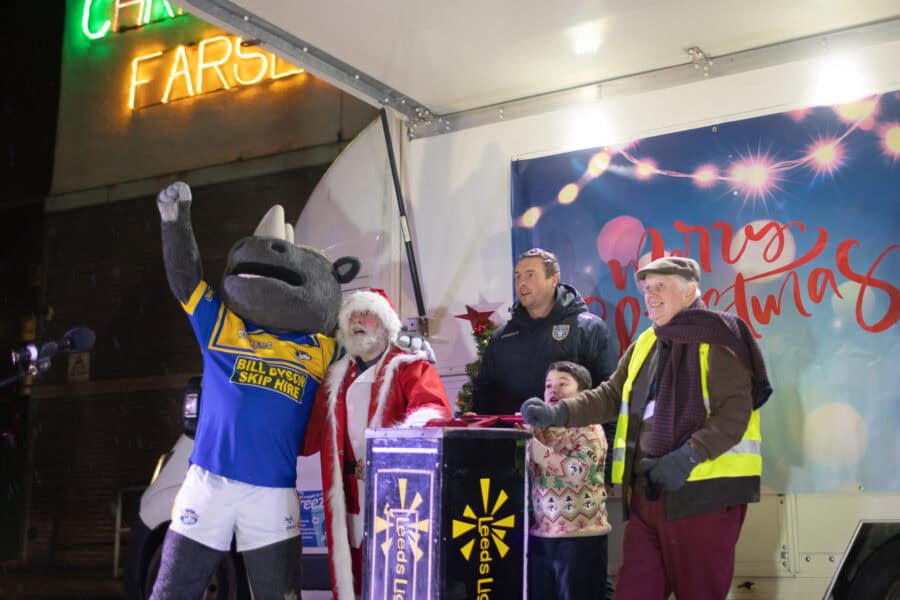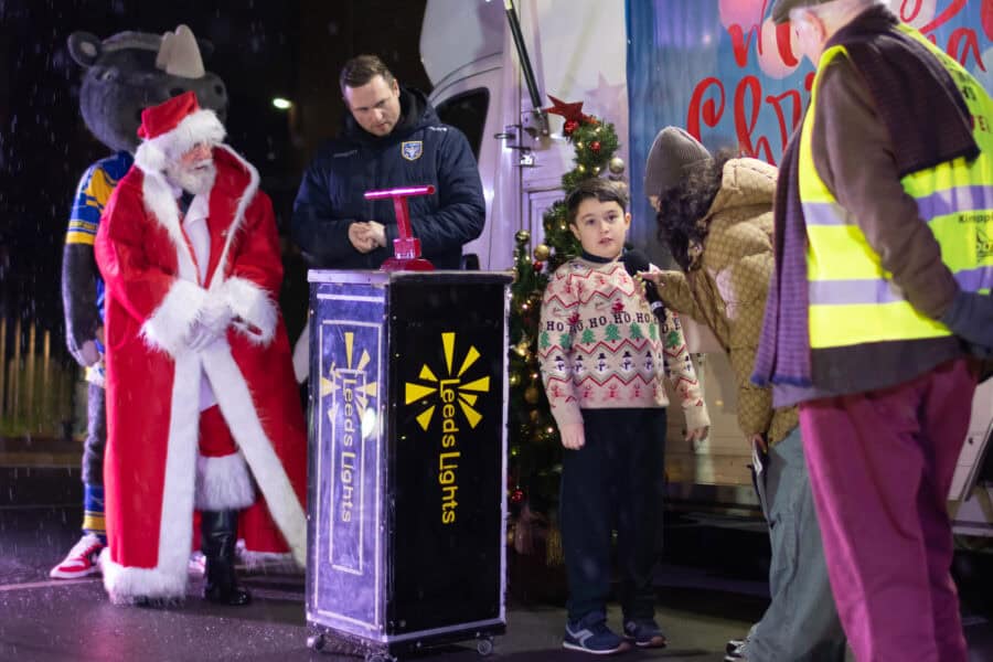 The switch on itself was carried out by eight-year-old swimmer Aaryan Mitra, from Swinnow, who has been raising funds for Children in Need. He was joined by FC Farsley’s David Stockdale, along with Santa and Ronnie the Rhino.