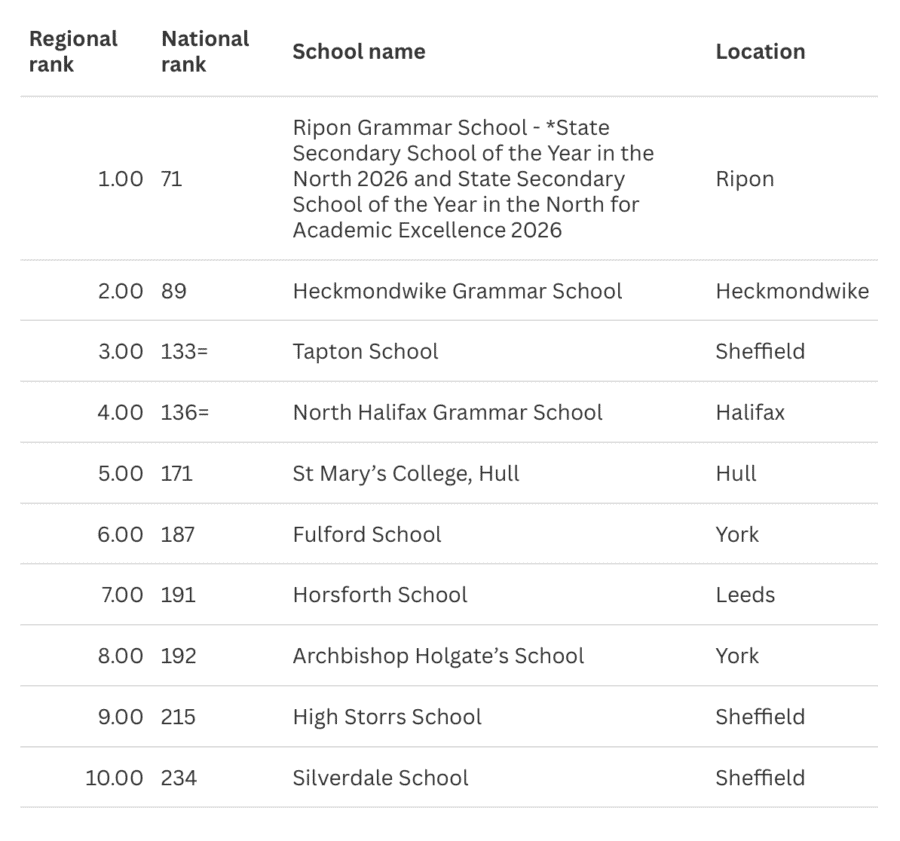 - Independent Secondary School of the Year in the North 2026: Sheffield Girls’ School GDST