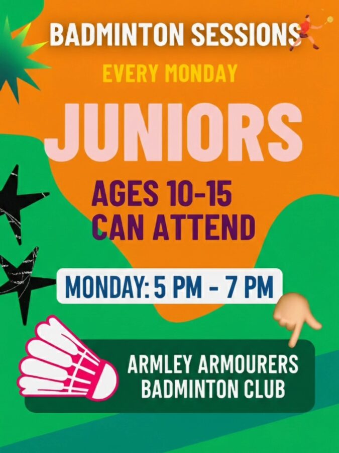 Fun, friendly badminton sessions run by Armley Armourers Badminton Club.