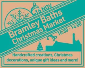 We have joined forces with the fabulous Bramley Moorfield’s Market to offer our very first Christmas Market here at the Baths. You can visit the Baths for local makers and stalls and then head over to Bramley Moorfield’s Market (near the cenotaph on Bramley Park)