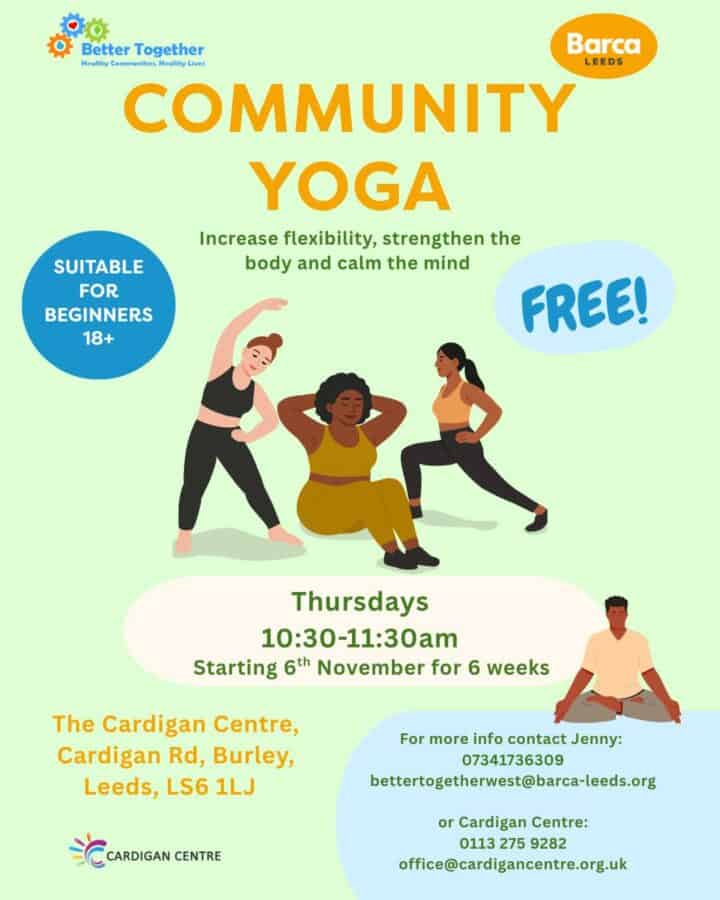 Join Jenny from our Better Together team for FREE beginners Yoga sessions at The Cardigan Centre, LS6 1LJ