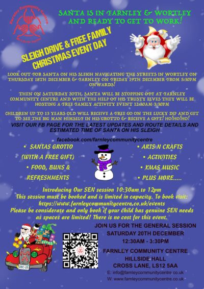 we will hold our annual Santa’s Grotto and Family Activity session at Farnley Community Centre.