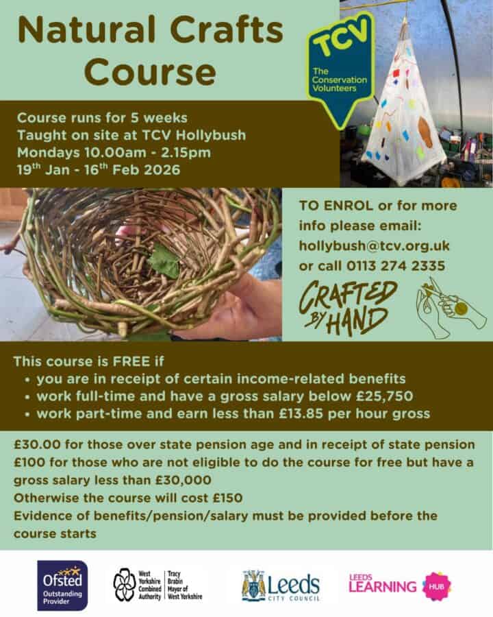 The Natural Crafts for Wellbeing course now starts on Monday 19th January, and runs each Monday until Monday 16th February and still has a few places remaining.