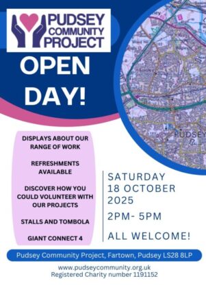 Our charity are having an Open Day next weekend – all ages are welcome! Sat 18th October 2-5pm at Pudsey Community Project, LS28 8LP