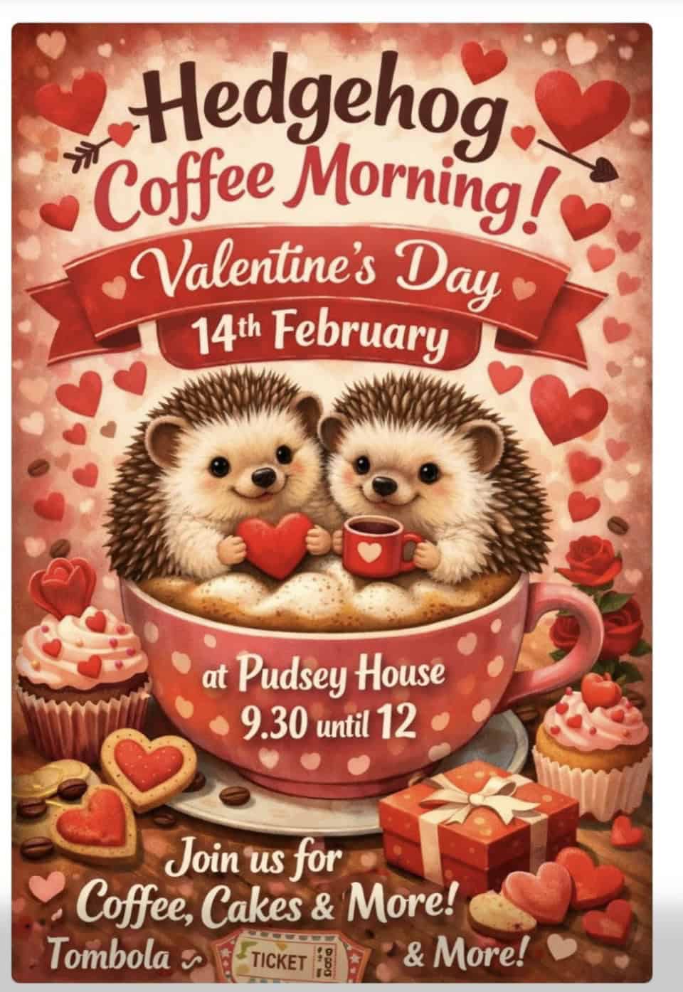 Celebrate Valentine’s Day at Pudsey House, at the Hedgehog Coffee Morning.