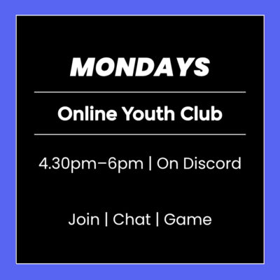 These sessions will take place on Discord and will be staff-led, moderated, and supported by clear ground rules, creating a safe and welcoming online space where young people can chat, play games and connect from home. Join from mobile, PC, or console!