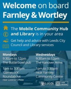 Are you needing advice & support with Leeds City Council services, such as:• Housing• Housing & Council Tax Benefits• Employment Support• Report Repairs• Library Services & Internet AccessThen why not come along to the Farnley & Wortley Mobile Community Hub?Leeds Mobile Community Hubs and Libraries 10:00am - 2:00pm - Housing advice, online shopping, CV writing, job searching, application forms etc.