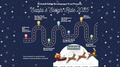 We have been in touch with the elves and can confirm that Santa will be in his sleigh riding around Kirkstall! 4:45pm KVDT Hub at St Stephen's Church Hall5:25pm Burley Park (Cardigan Lane entrance)5:45pm Queenswood Social Club6:00pm St Andrew's Church, Butcher Hill6:15pm Cragside Walk6:45pm Kirkstall Abbey Carpark7pm Kirkstall Valley Farm (Join us here for a […]
