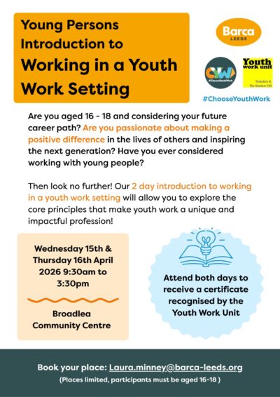 16–18? Curious about #YouthWork? Join us this April for a 2-day course packed with insights into what makes youth work unique & impactful!15th & 16th April 2026Broadlea Community Centre, Bramley, LS13 […]