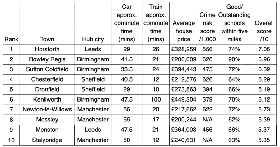 Horsforth claimed the top spot with 7.05/10 thanks to what the report says are strong educational options, plus a vibrant local scene with more than 220 coffee shops, bars, pubs, and restaurants within five miles.