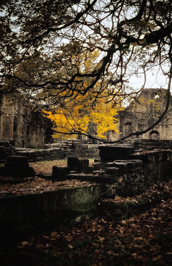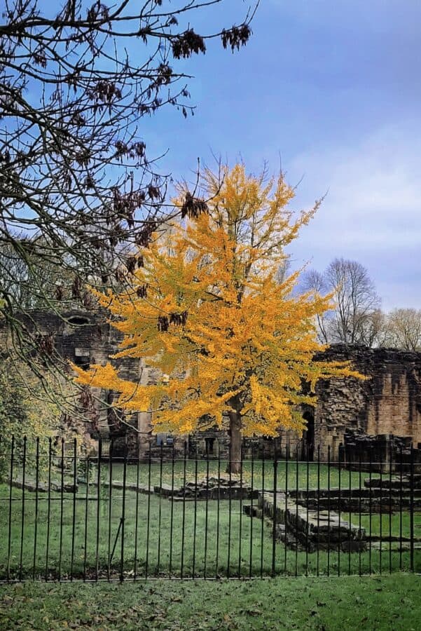 Every year the Ginko tree lights up Kirkstall Abbey to contrast with the rainy season.