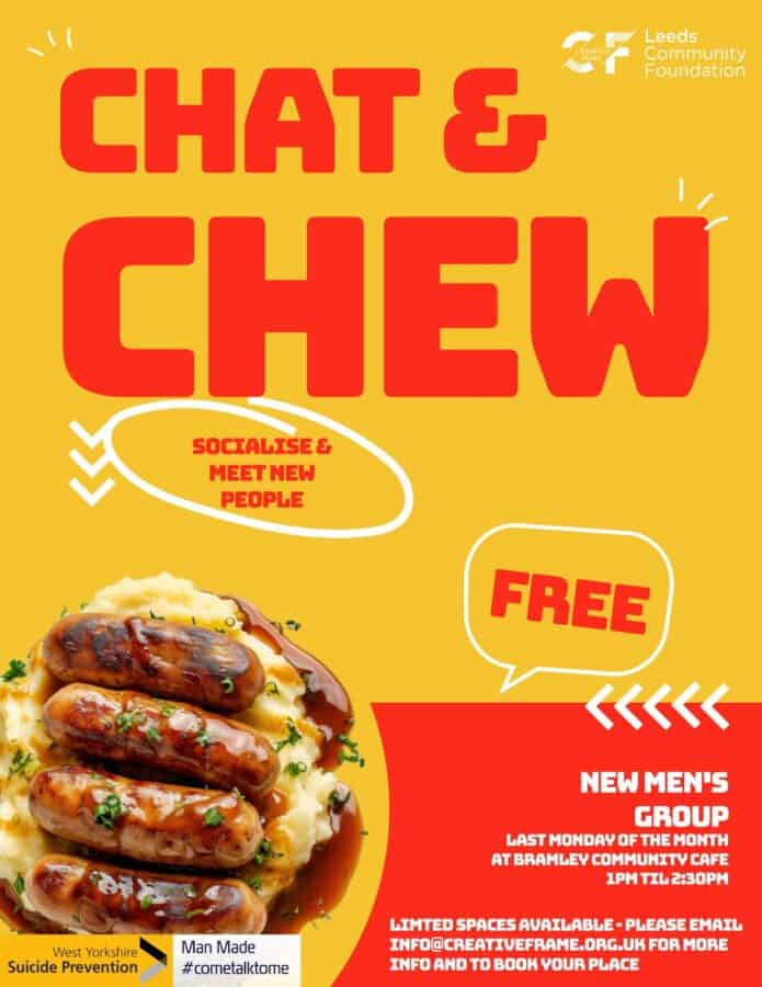 To book a free place for the next Chat and Chew session, planned for 27 October, contact Jonathan by email at info@creativeframe.org.uk.