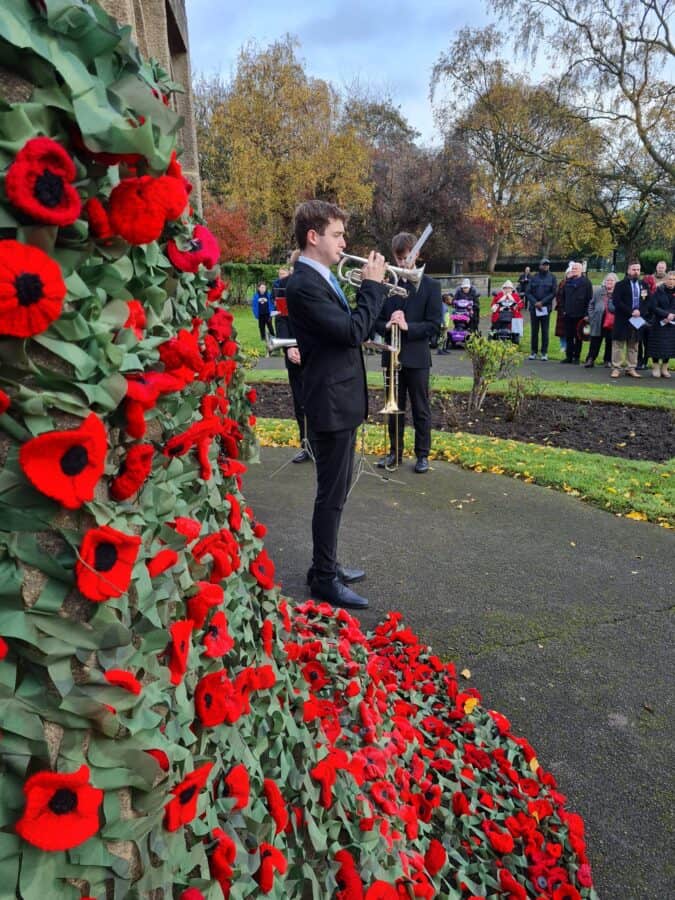 The University of Leeds Student Union brass band provided music, including a rendition of the Last Post. The boys’ brigade, guides and brownies also took part in the service.