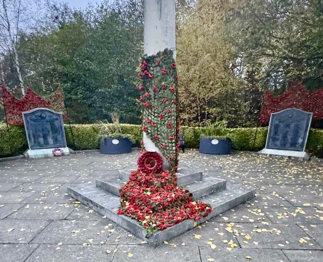 By 12.10, Bramley War Memorial was quiet again, but the wreaths and crosses, laid decades after two World Wars, say, “We remember them.”