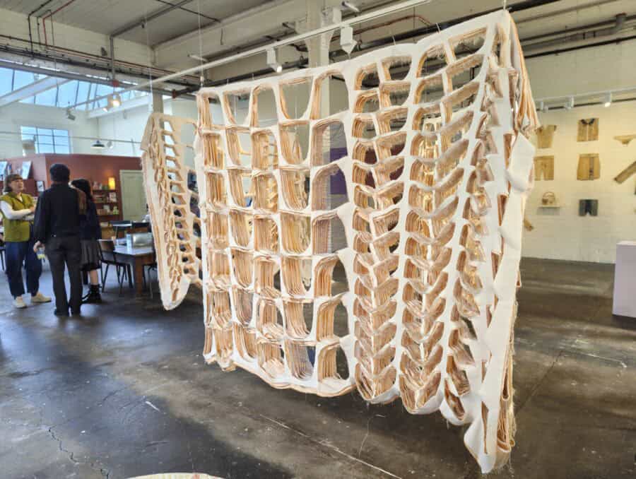The piece is called Iconic Fatigue and it’s a collaboration between lead artist Ellie Harrison, designer Bethany Wells, textile designer Hester Simpson and sound designer James Cooper.