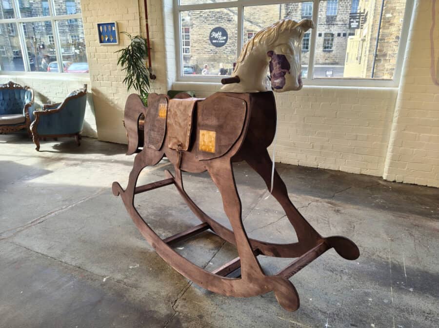 written shopping lists; Megan Preston-Davies presents a rocking horse sculpture that is