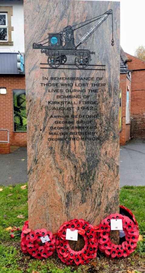 The memorial remembers the 26 men and one woman, from the Hawksworth Wood and Vesper Gate area, who lost their lives in times of conflict, and those killed in the bombing of Kirkstall Forge.