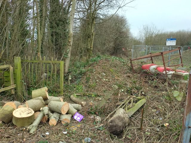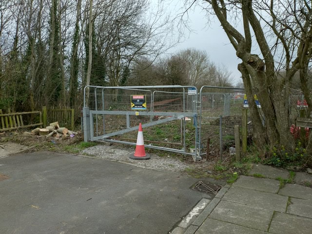 They had cut a swathe through the trees and scrub to the left of the works’ fencing which has barred the entrance for many months.