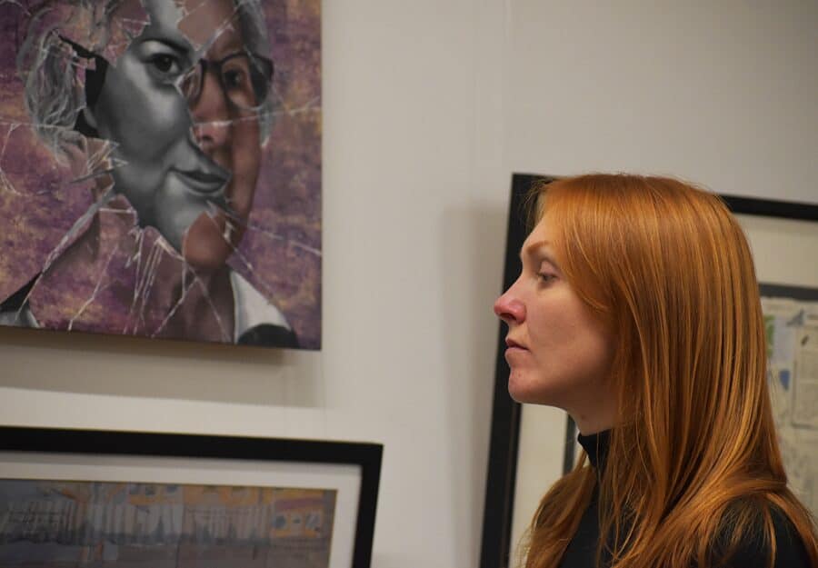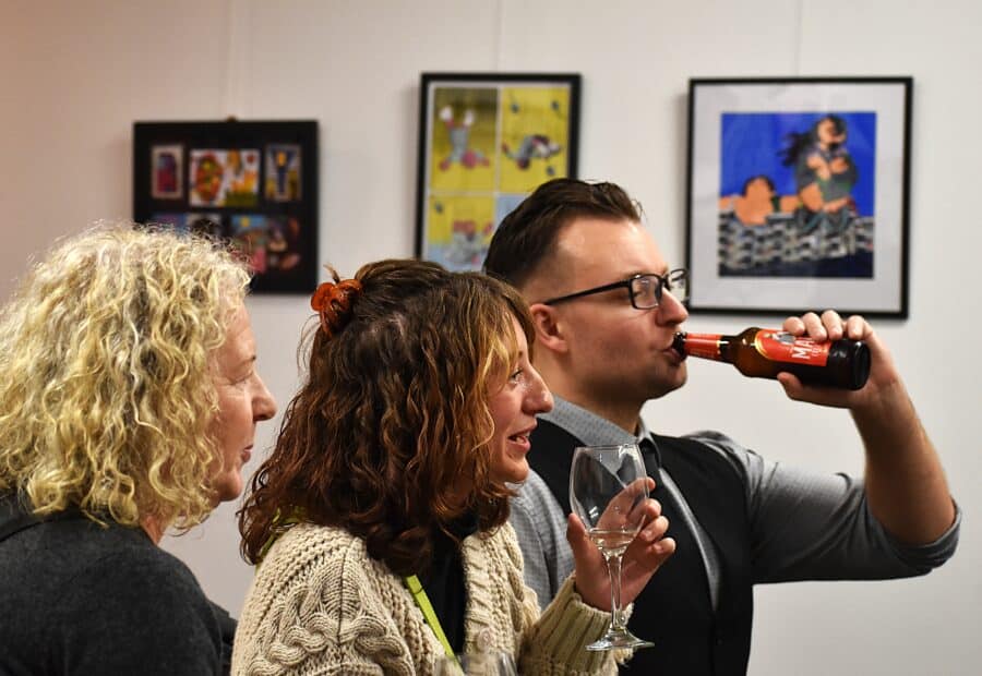 Despite the torrential rain lashing against the windows the crowds turned up to see an impressive array of work from many talented artists at latest exhibition at The Mill Gallery in Bramley.