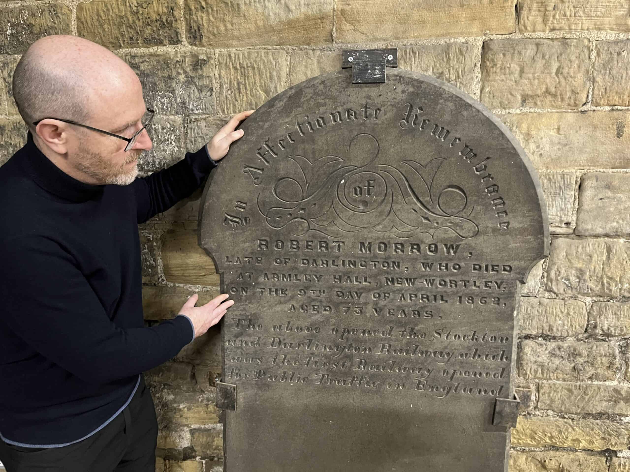 The somewhat cryptic inscription on Mr Morrow’s gravestone notes that he “opened the Stockton and Darlington Railway”, which records show was the first railway in the world to carry goods and passengers using steam locomotives when it opened in 1825.