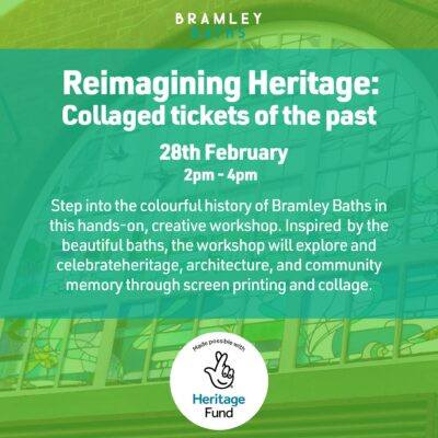 Step into the colourful history of Bramley Baths in this hands-on, creative collage workshop celebrating heritage, architecture, and community memory. Drawing inspiration from Edwardian stained glass, tiled interiors, and the Baths’ rich past as a swimming pool, dance hall, and social hub, participants will reimagine this iconic space through vibrant miniature artworks.You’ll explore curated colour […]