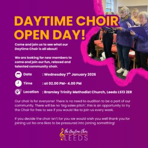 Bramley Trinity Methodist Church Bramley Town Street, LeedsBramley's new choir is born! No auditions, no music reading necessary! Easy access, all welcome. Book your free taster on our website!