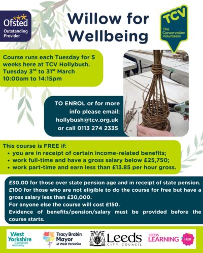 Do something for yourself in the New Year and come and get creative!The Natural Crafts for Wellbeing course now starts on Monday 19th January, and runs each Monday until Monday 16th February and still has a few places remaining.Come and be creative with willow, paper, ivy, wool, and more. If you would like to improve […]