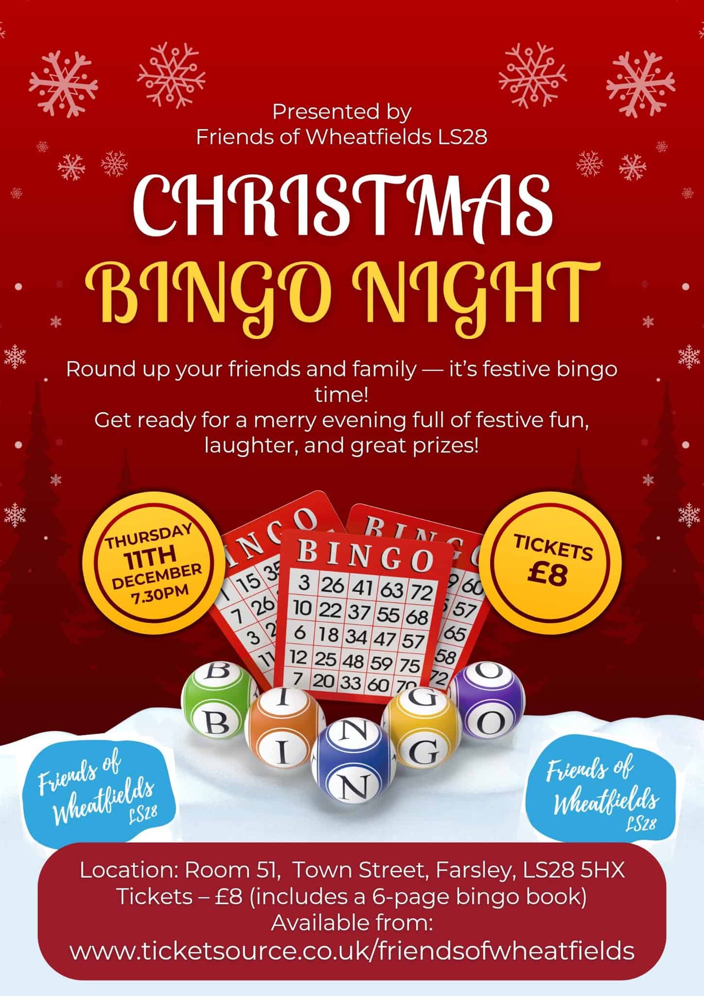 If you haven’t got your tickets yet, don’t worry, you can grab them right here:https://www.ticketsource.co.uk/friendsofwheatfieldsWe’ve got amazing prizes and fabulous cash jackpots up for grabs! So grab your dabbers, gather your friends and family, and join us for a fantastic night of festive fun