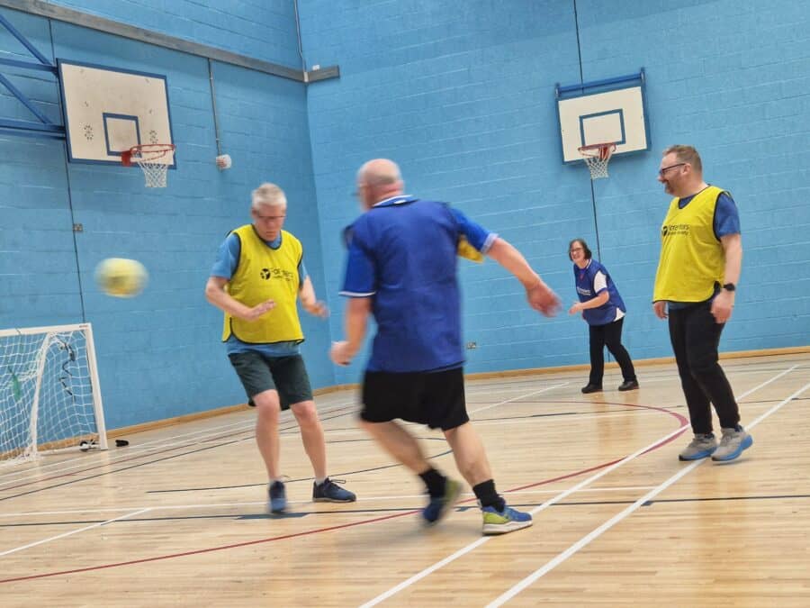 Walking football is like ordinary football played on a smaller pitch with mixed teams of six or seven, all aged over 50. Running is not only discouraged, it’s penalised and there’s no tackling. The ball hasn’t to go too high and there’s no dribbling.